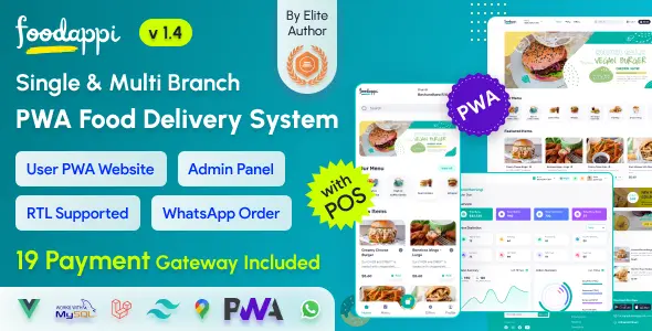 FoodAppi v1.1 - PWA Food Delivery System and WhatsApp Menu Ordering with Admin Panel | Restaurant POS