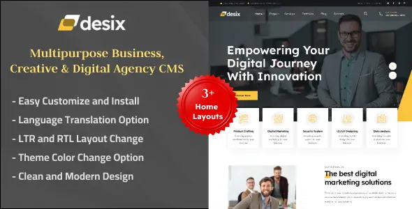 Desix is a responsive, user-friendly, translatable and easy-to-use content management system. Using this CMS, you can easily build a nice, modern and clean agency, or business website that have almost all the pages like team member, about, service, portfolio, news, contact etc. You can build education website, lawyer website, gym and fitness website etc. whatever you want to do.